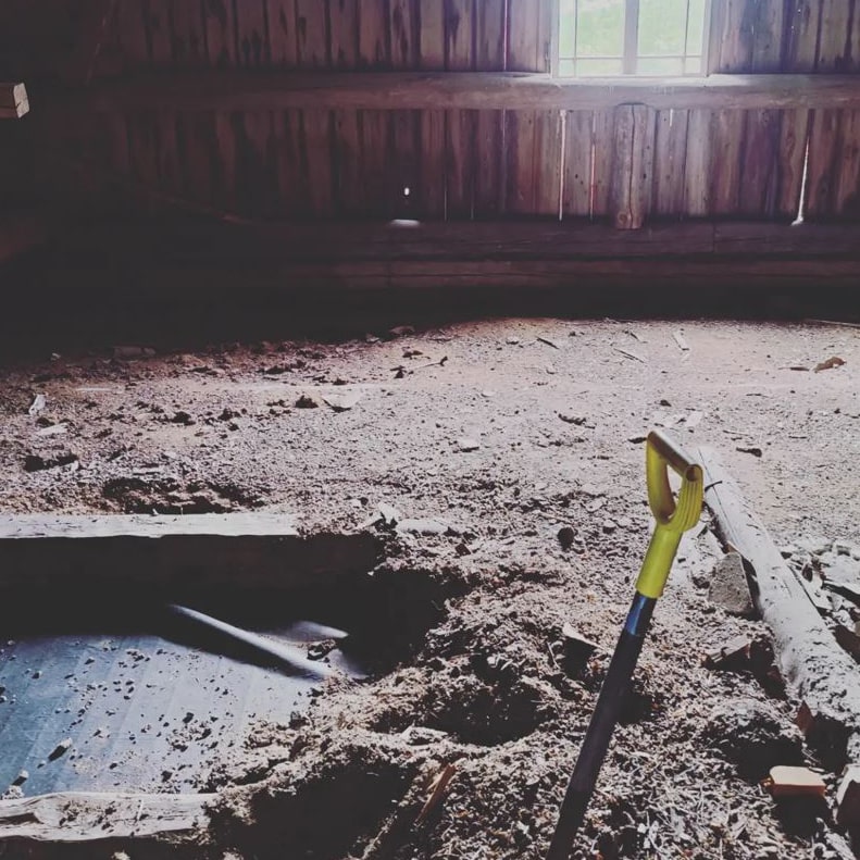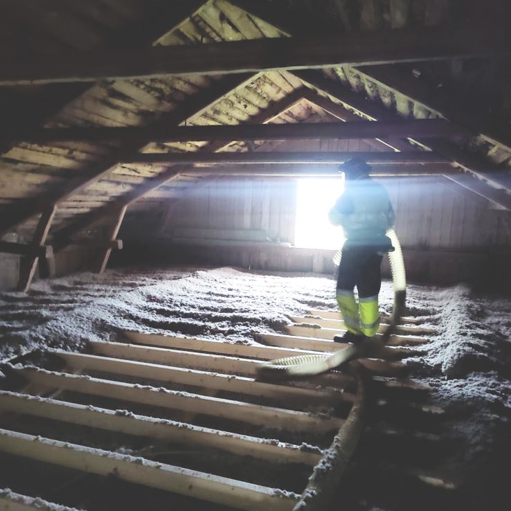 Tämän jälkeen korjattu lattia vuorattiin Elt-kraft Ilmansulkupaperilla, minkä päälle Anpe Oy kävi puhaltamassa reilun, lähes puolen metrin kerroksen Termex-selluvillaa.